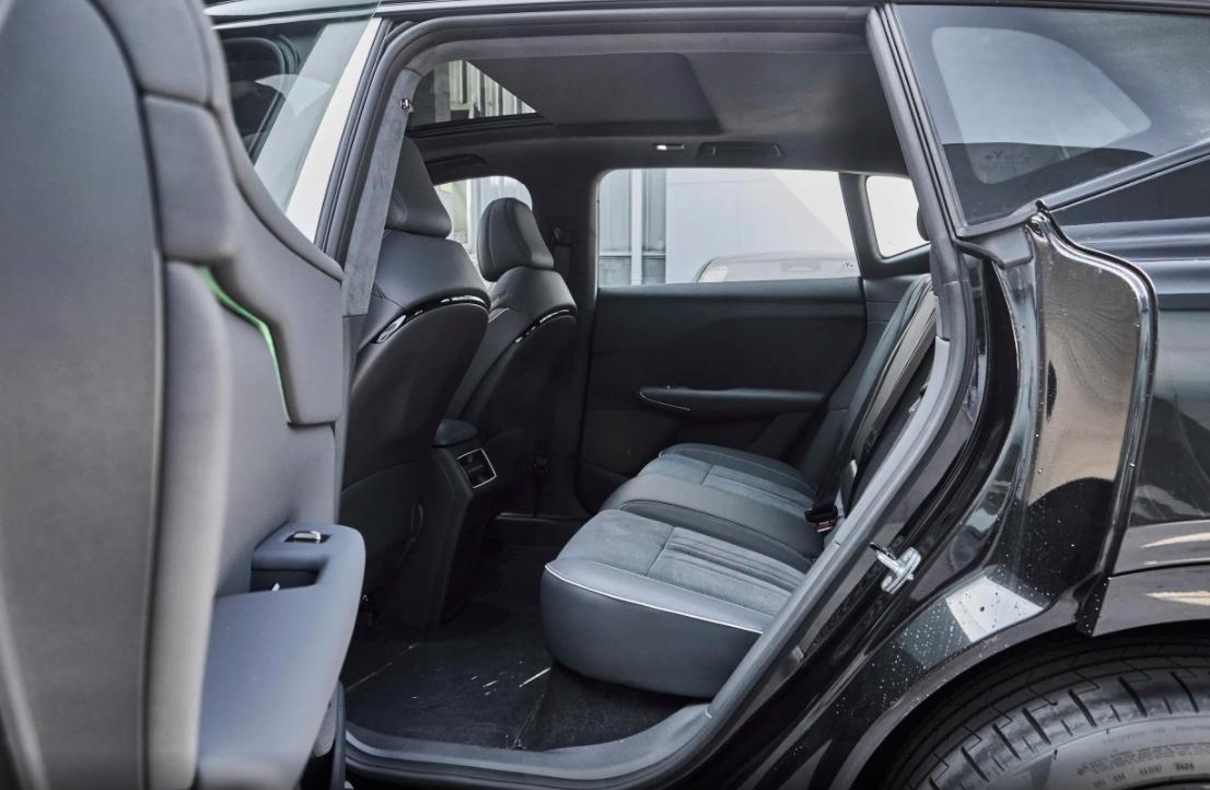 最后在后排,岚图知音的后排膝部空间很大,从数据上看已经达到了969毫米,而这也是因为该车的轴距来到了2.9米。不仅如此,岚图知音的头部空间也很宽敞,并且区别于大部分纯电车型,岚图知音并没有采用全景天幕,而是选择了带有电动遮阳板,可以开启的全景天窗,从实用性的角度来看,确实要比全景天幕更好一些。